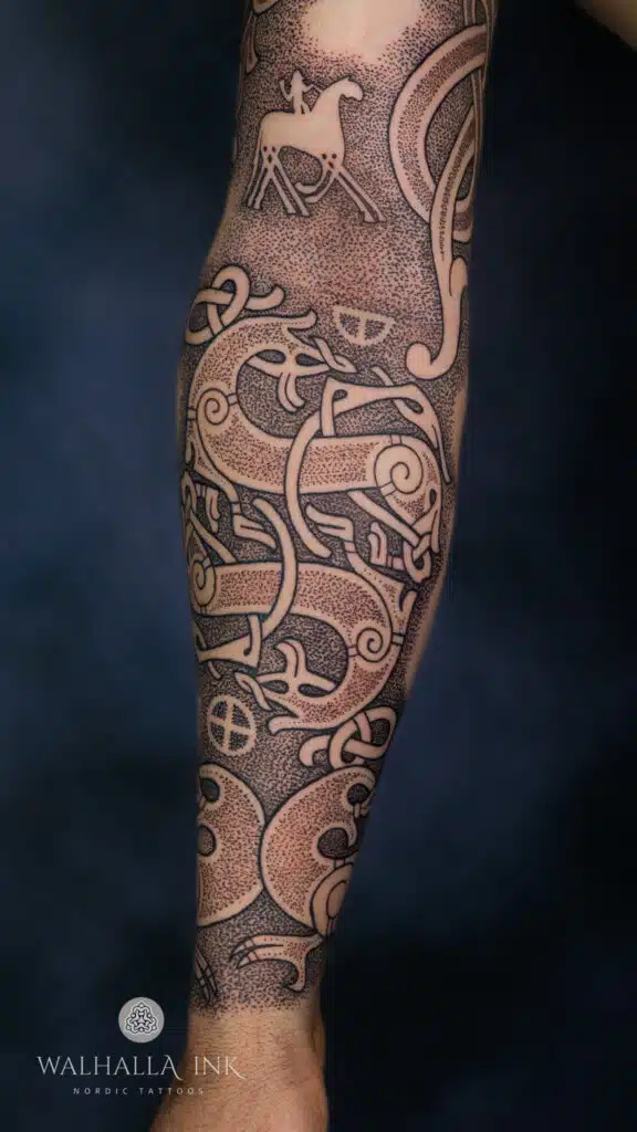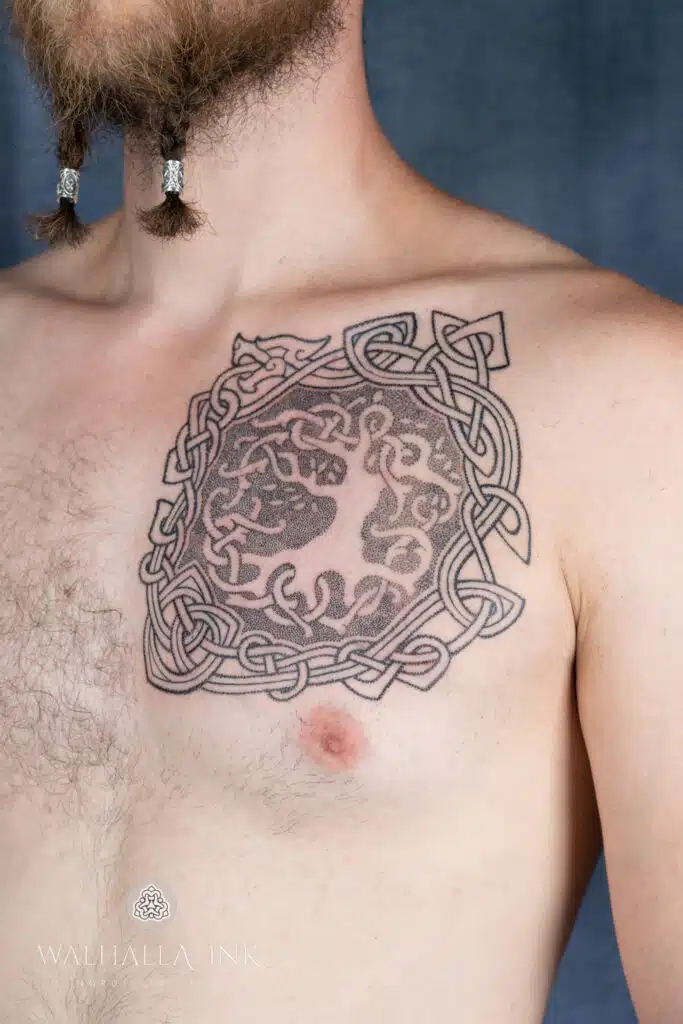 Ich bin bekannt für meine Fähigkeit, komplexe und detaillierte nordische Designs zum Leben zu erwecken. Jedes Tattoo, das ich erschaffe, ist einzigartig und spiegelt die Persönlichkeit und Geschichte des Trägers wider.